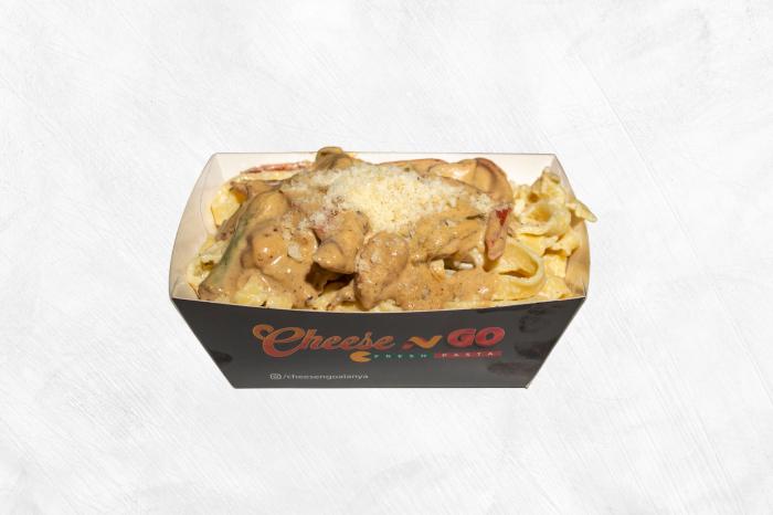 Marine edilmiş tavuk göğsü, krema mantar, extra parmesan ve türf yağı